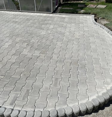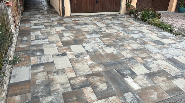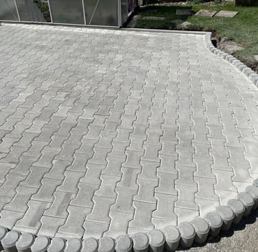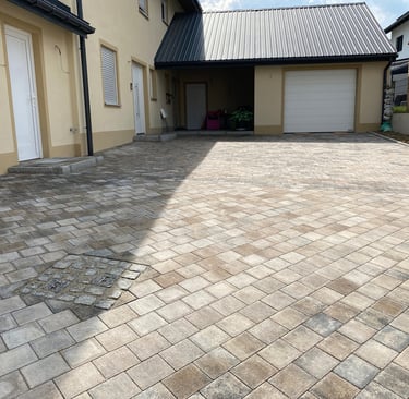 Verlegung von hochwertigen Pflastersteinen für Einfahrten und Wege.